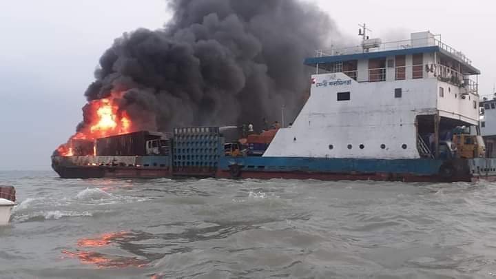 ভোলার ইলিশা নৌ থানার অফিসার ইনচার্জ (ওসি) সুজন পাল জানান, লক্ষ্মীপুরের মজুচৌধুরী ঘাট থেকে মালবাহী ট্রাক ও পিকআপ ভ্যান নিয়ে ভোলার ইলিশা ঘাট যাচ্ছিলে ফেরিটি। লক্ষ্মীপুরের মতিরহাট ও ভোলার চর সীমানার মাঝামাঝি মেঘনা নদীতে আসলে ফেরিটির পিছনে একটি ট্রাকে আগুন লেগে যায়।