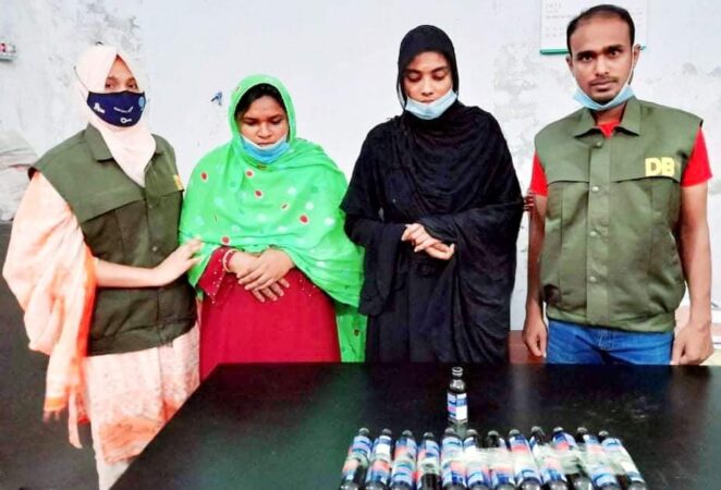 ডিবি পুলিশ জানায়, গোপন সংবাদের ভিত্তিতে বৃহস্পতিবার দুপুরে জেলার সদর থানার দোগাছী গ্রামে অভিযান চালিয়ে জয়পুরহাট জেলার পাঁচবিবি থানার ডামপুর গ্রামের মোঃ আজিজুল মন্ডলের মেয়ে মোছাঃ মুন্নি আকতার (২৮) এবং দিনাজপুর জেলার বকিমপুর থানার দক্ষিণ বাসুদেবপুর গ্রামের মোঃ আমিনুর ইসলামের স্ত্রী মোছাঃ সাবিনা বেগম (৩৫) কে গ্রেফতার করা হয়।