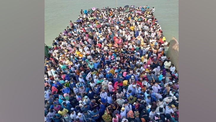 বিআইডব্লিউটিসির বাংলাবাজার ফেরিঘাট সূত্রে জানা গেছে, শুক্রবার সকাল থেকেই দক্ষিণাঞ্চলের বিভিন্ন জেলার যাত্রীদের চাপ রয়েছে। হাজার হাজার যাত্রী ঈদের আগেভাগেই বাড়ি ফিরতে শুরু করেছেন। নৌরুটে রো-রোসহ ১৪টি ফেরি চলাচল করছে। তবে যাত্রীদের সংখ্যা বেশি থাকায় ফেরিতে গাড়ি অপেক্ষাকৃত কম পার হচ্ছে। ফেরিতে গাড়ি পার্কিংয়ের জায়গা থেকে শুরু করে যাত্রীদের বসার জায়গাসহ সর্বত্র ছিল উপচেপড়া ভিড়।