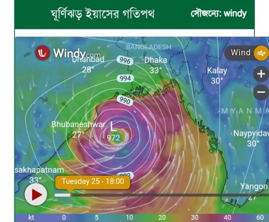 ঘূর্ণিঝড় ইয়াস ক্রমেই ভংয়কর হচ্ছে। ২৫ মে মঙ্গলবার বিকালের মধ্যে সুপার সাইক্লোনে পরিণত হতে পারে। বাতাসের গতি ঘণ্টায় ১৬৫ থেকে ১৮৫ কিলোমিটার পর্যন্ত বাড়তে পারে। আগামীকাল সকালে ভারতের পশ্চিমবঙ্গ ও ওড়িষ্যা উপকূলে এটি আঘাত হানতে পারে। ভারতের আবহাওয়া অধিদপ্তরের তথ্য অনুযায়ী, এটি ঘণ্টা ৯ কিলোমিটার গতি নিয়ে এগোচ্ছে।