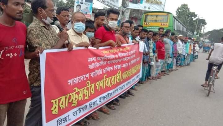 নিজস্ব সংবাদদাতাঃ লক্ষ্মীপুর জেলার রায়পুর উপজেলায় ব্যাটারী চালিত রিকশা ইজিবাইক চালক সংগ্রাম পরিষদের উদ্দ্যেগে বিক্ষোভ মিছিল ও সমাবেশ হয়েছে। স্বরাষ্ট্রমন্ত্রীর ব্যাটারী চালিত রিকশা ইজিবাইক বন্ধের অমানবিক সিদ্ধান্ত প্রত্যাহারের দাবিতে ৩০ জুন বুধবার বিকেলে উপজেলার পৌর বাসস্ট্যান্ডে সমাবেশ শেষে একটি বিক্ষোভ মিছিল শহরের বিভিন্ন সড়ক প্রদক্ষিণ করে।