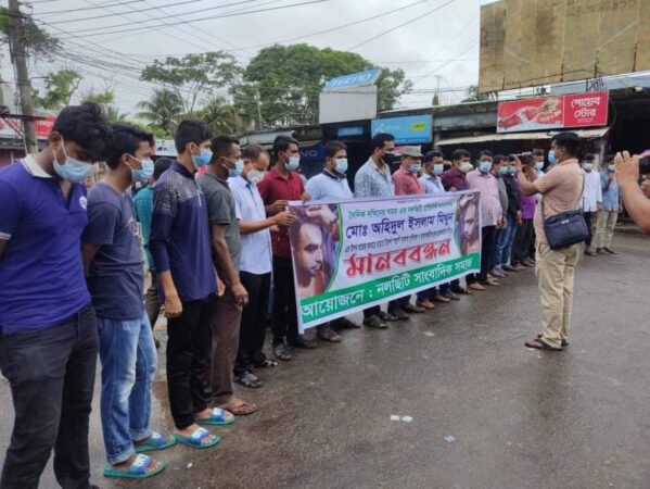 বুধবার (২৮ জুলাই) বেলা ১১টা থেকে ১২টা পর্যন্ত বিজয় উল্লাস-৭১ চত্বরে ঘণ্টাব্যাপী মানববন্ধন কর্মসূচি পালন শেষে সাংবাদিকেরা সংক্ষিপ্ত সমাবেশ করেন।