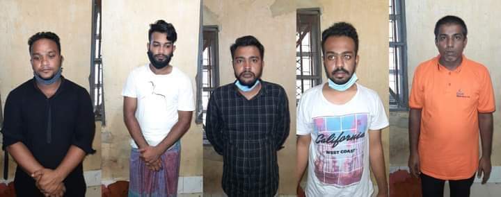 লক্ষ্মীপুর প্রতিনিধি: লক্ষ্মীপুরে মৎস্য কর্মকর্তা পরিচয় দিয়ে ইলিশ বোঝাই গাড়ি থেকে মাছ লুট ও চাঁদাবাজি কালে জেলা ছাত্রলীগের সাবেক এক নেতাসহ ৫জনকে আটক করেন লক্ষ্মীপুর সদর মডেল থানা পুলিশ। সোমবার (২আগষ্ট) রাত ১১টায় সদর উপজেলার উত্তর তেমুহনী এলাকায় এঘটনা ঘটে। আটককৃতরা হলো জেলা ছাত্রলীগের সাবেক উপ দপ্তর সম্পাদক শেবাব নেওয়াজ (২৩), জেলা মৎস্য অফিসের অফিস সহায়ক নকিবুল হাছান নকিব (২৫), সাংবাদিক নামধারী আনোয়ার হোসেন রতন (৩১), বাবুল চন্দ্র দাস (৪৫), ও মো: শাকিল সুফি (২৫)। মঙ্গলবার বিকালে আটককৃতদের আদালতের মাধ্যমে জেলহাজতে প্রেরণ করেছেন পুলিশ।