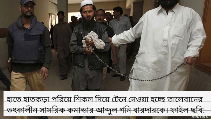 এগারো বছর আগে হাতে হাতকড়া পরিয়ে শিকল দিয়ে টেনে নেওয়া হচ্ছিল যাকে, সেই আব্দুল গনি বারদারই এখন আফগানিস্তানের প্রেসিডেন্ট হিসেবে আলোচনার কেন্দ্রবিন্দুতে রয়েছেন। ২০১০ সালের ১৮ ফেব্রুয়ারিতে রয়টার্সের তোলা ওই ছবিটি বিশ্বব্যাপী এখন ব্যাপক আলোচিত হচ্ছে।