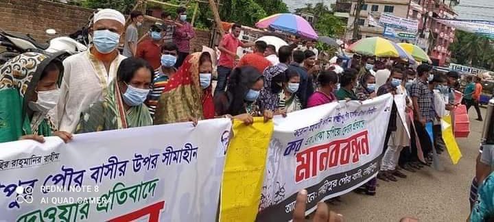 এর প্রতিবাদে ৮ সেপ্টেম্বর বুধবার বেলা ১১টার দিকে লক্ষ্মীপুর প্রেস ক্লাবের সামনে পৌরবাসীর ব্যানারে আওয়ামী লীগ ও অঙ্গসংগঠনের নেতাকর্মীসহ দুই শতাধিক নারী-পুরুষ মানববন্ধনে অংশ নেন। তাদরে হাতে ছিল ‘মেয়র আছে ভবন নেই, কর আছে সেবা নেই’ লেখা-সম্বলিত বিভিন্ন ব্যানার।