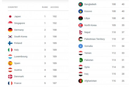 নিজস্ব প্রতিবেদকঃ বিশ্বের শক্তিশালী ১১৬ পাসপোর্টের তালিকায় ১০৮তম অবস্থানে জায়গা পেয়েছে বাংলাদেশের পাসপোর্ট। বাংলাদেশের পরে আছে কসোভো, লিবিয়া, উত্তর কোরিয়া, নেপাল, ফিলিস্তিন, সোমালিয়া, ইয়েমেন পাকিস্তান, সিরিয়া, ইরাক ও আফগানিস্তান। ৫ অক্টোবর মঙ্গলবার বিশ্বে পাসপোর্টের মান নির্ধারণকারী সূচক হেনলি পাসপোর্ট ইনডেক্স-২০২১ প্রকাশিত হয়। কোন দেশের পাসপোর্টে কতটি দেশে ভিসামুক্ত ভ্রমণ করা যায়- এর ওপর ভিত্তি করে এ সূচকটিতে উঠে এসেছে বাংলাদেশের অবস্থান।