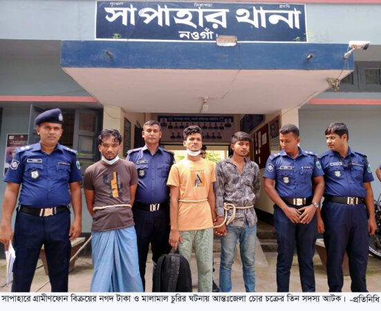 নওগাঁর সাপাহারে গ্রামীণফোনের মালামাল বিক্রয় ও চুরির ঘটনায় থানা পুলিশের পৃথক দুটি অভিযানে দেশের বিভিন্ন এলাকা হতে আন্তঃজেলা চোর চক্রের তিনজন সক্রিয় সদস্যকে আটক করা হয়েছে।
