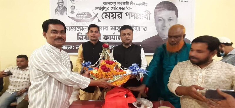 মিজানুর শামীমঃ লক্ষ্মীপুর পৌরসভার আসন্ন নির্বাচনে মেয়র পদে আওয়ামী দলীয় প্রার্থীকে দলের পক্ষ থেকে গণ সংবর্ধনা দেয়া হয়েছে। ২৫ অক্টোবর সোমবার বিকেলে আওয়ামী লীগ ও এর সহযোগী সংগঠনের হাজারো নেতাকর্মী শহরের উত্তর তেমহুনীতে সদ্য নৌকার মনোনয়ন পাওয়া জেলা আওয়ামী লীগের সাংস্কৃতিক বিষয়ক সম্পাদক মোজাম্মেল হায়দার মাসুম ভুঁইয়াকে ফুলেল শুভেচ্ছায় বরণ করে নেয়।