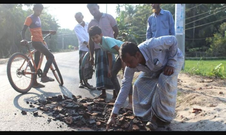 সড়কের তিন কিলোমিটার এলাকা ঘুরে দেখা গেছে, নিম্নমানের বিটুমিন, বালি, পাথরের মিশ্রণে কাজ করায় যানবাহন চলাচলের সময় চাকার সঙ্গে অনেক জায়গার কার্পেটিং উঠে যাচ্ছে। চলতি বছরের শুরুর দিকে স্থানীয় সরকার প্রকৌশল অধিদপ্তরের (এলজিইডি) তত্ত্বাবধানে পল্লী সড়ক ও ব্রিজ-কালভার্ট মেরামতকরণ জিওবি মেইনটেন্যান্স প্রকল্পের আওতায় খানাখন্দে ভরা ছয় কিলোমিটার সড়কের সংস্কার অনুমোদন হয়।