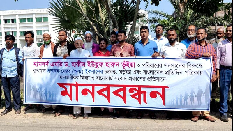 মানববন্ধনে অংশগ্রহণকারীদের দাবি, সম্প্রতি চাকরি হারিয়ে হামদর্দ ল্যাবরেটরীজ (ওয়াক্ফ) বাংলাদেশের ব্যবস্থাপনা পরিচালক ড. হাকীম মো. ইউসুফ হারুন ভূঁইয়া ও তাঁর পরিবারের সদস্যদের বিরুদ্ধে ষড়যন্ত্র শুরু করেছেন লক্ষ্মীপুর সদর উপজেলার উত্তর জয়পুর গ্রামের চৌকিদার বাড়ির আবদুর রবের ছেলে ইকবাল মাহমুদ। ষড়যন্ত্রের অংশহিসেবে তিনি ভুল তথ্য দিয়ে বাংলাদেশ প্রতিদিন পত্রিকায় একটি ভিত্তিহীন ও পক্ষপাতিত্বমূলক সংবাদ পরিবেশন করতে সক্ষম হয়েছেন। এতে উল্লেখ করা হয়- ‘নোয়াখালীর এমপিওভুক্ত শিক্ষা প্রতিষ্ঠান এইচ.এ. জনকল্যাণ আলিম মাদরাসায় জঙ্গী প্রশিক্ষণ দেয়া হয়’, যা সম্পূর্ণ মিথ্যা ও বানোয়াট তথ্য।