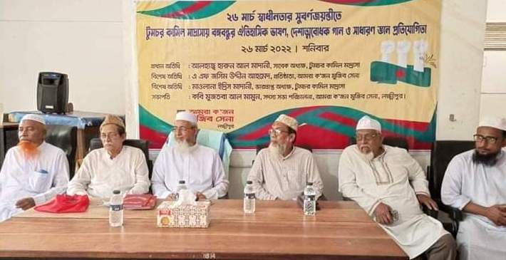 আমরা ক’জন মুজিব সেনা” লক্ষ্মীপুর জেলা শাখার উদ্যোগে ২৬”শে মার্চ স্বাধীনতার সুবর্নজয়ন্তীতে লক্ষ্মীপুর টুমচর ইসলামিয়া কামিল মাদ্রাসার শিক্ষার্থীদের অংশগ্রহণে বঙ্গবন্ধুর ঐতিহাসিক ভাষণ, দেশাত্মবোধক গান ও সাধারণ জ্ঞান প্রতিযোগিতা আয়োজন করা হয়েছে। পরে সাধারন জ্ঞান প্রতিযোগীতায় বিভিন্ন ক্যাটাগরিতে পুরস্কার বিতরন করা হয়।