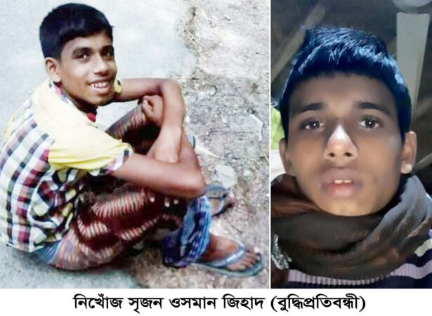 নিজস্ব প্রতিনিধি :লক্ষ্মীপুরে সৃজন ওসমান জিহাদ (১৭) নামে বুদ্ধিপ্রতিবন্ধী এক তরুণ হারিয়ে গেছে। সে সদর উপজেলার মান্দারী ইউনিয়নের গন্ধব্যপুর গ্রামের নুরুজ্জামান ব্যাপারী বাড়ির মৃত হুমায়ুন কবিরের (৪০) ছেলে। গত ৪ দিনেও একমাত্র সন্তানের খোঁজ না পেয়ে দিশেহারা ওই তরুণের মা সেতারা বেগম (৪০)।