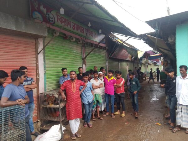 একটি সাইনবোর্ড (সাট লিস্ট) ঝুলিয়ে দেন। এতে লিখা রয়েছে হাঁস, মোরগ, কবুতর ইত্যাদি ক্রয়-বিক্রয়ে গৃহস্থ শতকরা ১০% ও ব্যবসায়ী ১৫% হারে খাজনা পরিশোধ করতে হবে। ইজারাদেরর দাবী অনুযায়ী শতকরা মোট ২৫%টাকা খাজনা পরিশোধ করতে হবে। আমরা ব্যবসায়ীরা ইজারাদারের এই অযৌক্তিক অতিরিক্ত খাজনা পরিশোধ করতে অপারগতা প্রকাশ করলে গতকাল শনিবার রাতে আমাদের মোরগ বহনকারী প্রায় ২০টি পিকআপ ভ্যান আনলোড করতে দেয়নি ইজারাদার মনিরুজ্জামান পাটোয়ারী। আনলোড করতে না পেরে মোরগ নিয়ে ফেরত যায় গাড়িগুলো। আমরা এঘটনার প্রতিবাদে আজ দোকান বন্ধ রেখেছি। আমরা প্রশাসনের কাছে এর সঠিক সমাধান চাই।