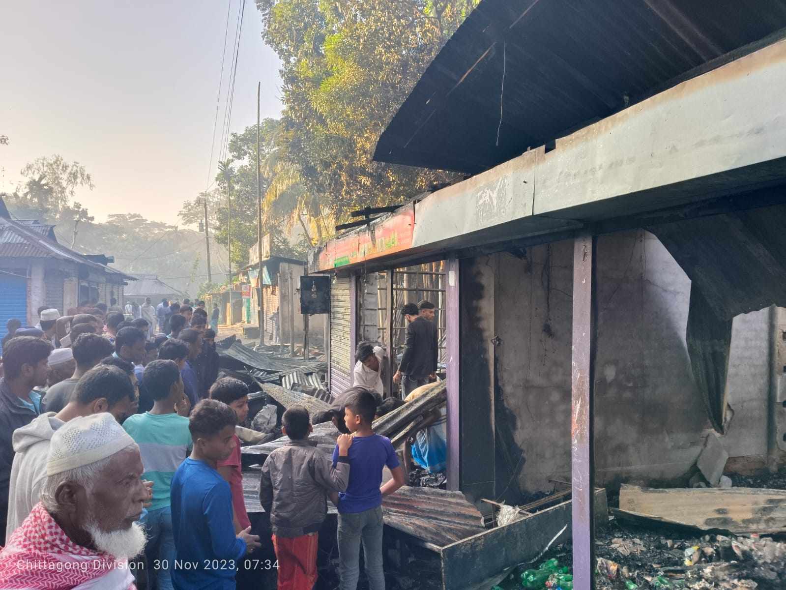 ক্ষতিগ্রস্ত দোকানঘর গুলো হচ্ছে- নব তরুণ পাঠাগার, মামুন কনফেকশনারী , ছোটনের মুদি দোকান,জহিরের চা-দোকান,৩ টি গোডাউন ও নব তরুণ পাঠাগারসহ মোট ৭টি দোকান পুড়ে ছাই হয়ে গেছে।