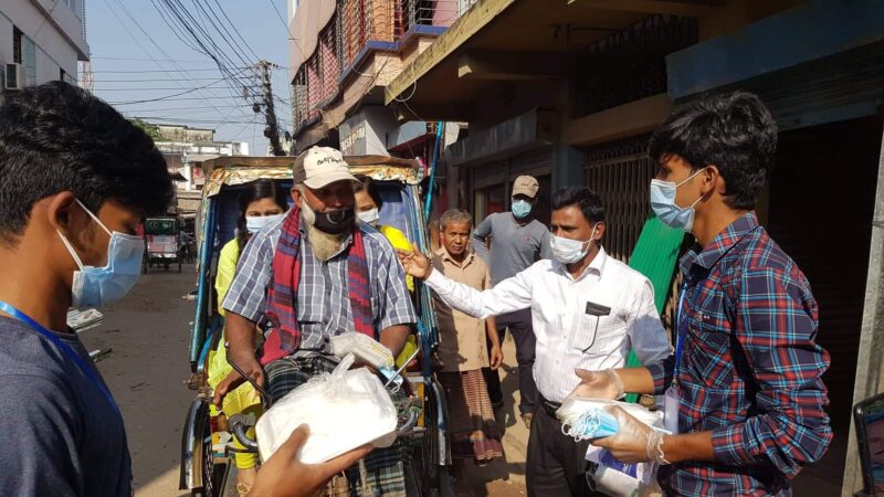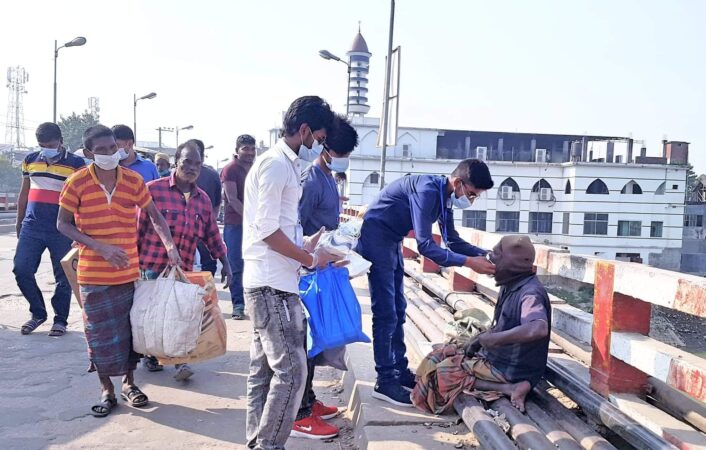 শনিবার দুপুরে বালুডাঙ্গা বাসস্ট্যান্ড থেকে শুরু করে দয়ালের মোড়, মুক্তির মোড়, গোস্তহাটীর মোড়, ডাবপট্টি, লিটন ব্রিজ, তাঁজের মোড়, ঢাকা বাস স্ট্যান্ড নামক স্থানে ঘুরে ঘুরে প্রায় ৫ শতাধিক অসহায় রিক্সা চালক ও অসহায় পথচারীদের মাঝে রান্না করা খাবার প্যাকেট বিতরণ করা হয়।