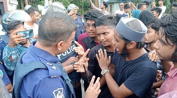 অতিরিক্ত পুলিশ সুপার হাসান মোস্তফা স্বপন জানান, কোটা সংস্কার আন্দোলনকারীরা সড়ক অবরোধ করেছিল, পরে পুলিশ ঘটনাস্থলে গিয়ে পরিস্থিতি নিয়ন্ত্রণে আনে। এ সময় ইকরাম নামে এক ছাত্রের ব্যাগে হাতুড়ি পাওয়ায় তাকে আটক করা হয়েছে। তার বিরুদ্ধে আইনগত ব্যবস্থা নেয়া হবে। এদিকে শিক্ষার্থীদের আন্দোলনকে কেন্দ্র করে শহরের বিভিন্ন গুরুত্বপূর্ণ স্থানে পুলিশ মোতায়েন রয়েছে।