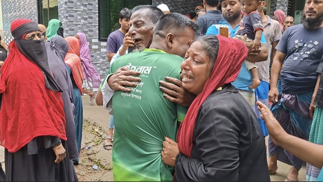 এদিকে বেলা ১০টার দিকে নিহত ৭জনের মরদেহ বাড়িতে পৌঁছলে তৈরি হয় এক হৃদয় বিদারক দৃশ্য। কান্নায় ভেঙ্গে পড়েন নিহতের স্বজন ও প্রতিবেশীরা। তাদের কান্নায় ভারী হয়ে উঠে আকাশ-বাতাস। তবে একসাথে এতো সজন হারিয়ে বেঁচে যাওয়ারাও বাকরুদ্ধ হয়ে পড়েন। একই চিত্র এলাকাবাসীসহ আত্নীয়-স্বজনদের। বিকেলে একই সাথে পরিবারের ৬সদস্যকে পারিবারিক কবরস্থানে ও বাহারের নানাী ফয়েজুন নেছাকে হাজিরপাড়ায় পারিবারিক কবরস্থানে দাফন করা হয়েছে।