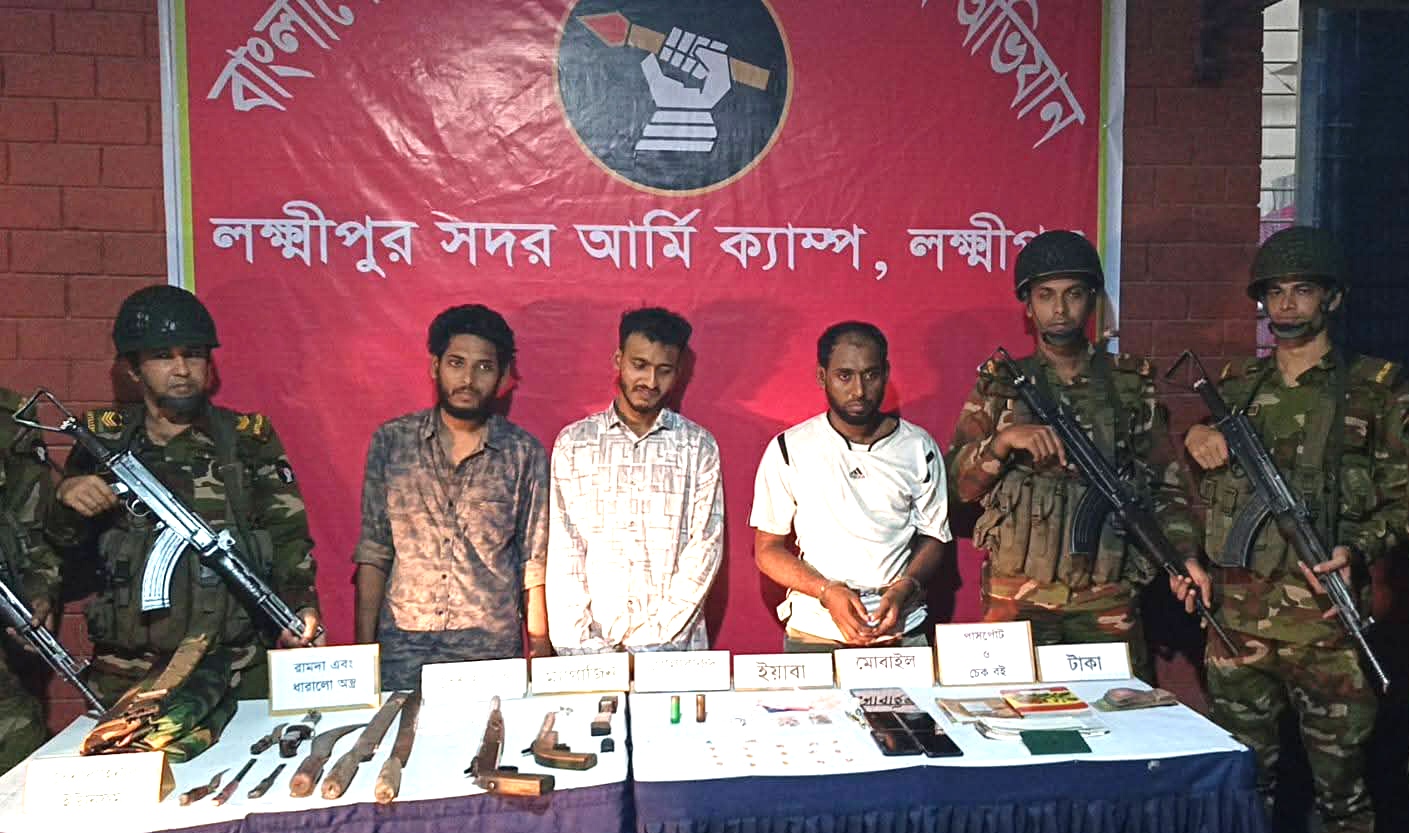 লক্ষ্মীপুর সেনা ক্যাম্পের ক্যাপ্টেন মো. রাহাত খাঁন জানান, গোপন সংবাদের ভিত্তিতে খবর পেয়ে ওই বাড়িতে অভিযান চালানো হয়। এসময় তিনজনকে আটক করা হয়। তাদের কাছ থেকে অস্ত্র, গুলি, ম্যাগজিন, ইয়াবা, নগদ টাকা ও ইয়াবা সেবনে ব্যবহৃত সরাঞ্জামাদি উদ্ধার করা হয়। আটকৃতদের পুলিশে হস্তান্তর করা হয়েছে।