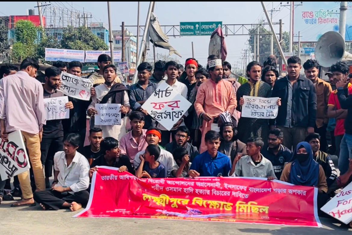 গাজী মমিন : শহীদ শরীফ ওসমান বিন হাদি হত্যার বিচার ও দোষীদের শাস্তির দাবিতে লক্ষ্মীপুরে সড়ক অবরোধ করে বিক্ষোভ করেছে ছাত্র-জনতা। বৃহস্পতিবার (৮ জানুয়ারি) দুপুরে জেলা শহরের ঝুমুর বিজয় চত্বরে সাধারণ শিক্ষার্থীদের ব্যানারে এ কর্মসূচি পালন করা হয়।