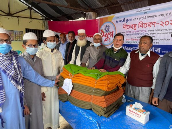 এরই ধারাবাহিকতায় স্থানীয় চার শতাধিক অসহায় পরিবারের মাঝে শীতবস্ত্র হিসেবে কম্বল বিতরণ ও সীমিত পরিসরে কেক কাটা অনুষ্ঠানের মধ্যদিয়ে এক যুগ পূর্তি উদযাপন করেছে মান্দারী ক্লাব। শনিবার (২ জানুয়ারি) বিকেলে সদর উপজেলার মান্দারী বাজার বণিক সমিতি কার্যালয়ের সামনে শীতবস্ত্র বিতরণ কর্মসূচি পালন করা হয়। মান্দারী ক্লাবের সভাপতি মিজানুর রহমান বাবলুর সভাপতিত্বে এবং সাধারণ সম্পাদক জাহিদুর রহিমের সঞ্চালনায় এ অনুষ্ঠানে অতিথি ছিলেন মান্দারী ক্লাবের উপদেষ্টা এবং জেলা আওয়ামী লীগের ত্রাণ ও সমাজকল্যাণ বিষয়ক সম্পাদক সামছুদ্দিন সাজু। এসময় কফিল উদ্দিন বিশ্ববিদ্যালয় কলেজের সহকারী অধ্যাপক মো. শহীদুল ইসলাম, জেলা প্রাথমিক শিক্ষক সমিতির সভাপতি সামছুদ্দিন বাবুল, মান্দারী ইউনিয়ন আওয়ামী লীগের সভাপতি ও স্থানীয় মেম্বার মাহবুবুর রহমান রাজু, ইউনিয়ন আওয়ামী লীগের সাধারণ সম্পাদক মোহাম্মদ মাসুদ, বণিক সমিতির সহ-সভাপতি হুমায়ুন কবির পাটওয়ারী, সাধারণ সম্পাদক আলতাফ উদ্দিন মাহমুদ, বণিক সমিতির সাবেক সভাপতি আতিকুর রহমান এবং সাধারণ সম্পাদক ফারুক হোসেনও অতিথি হিসেবে উপস্থিত ছিলেন। এরআগে শুক্রবার (১ জানুয়ারি) রাতে মান্দারী ক্লাব কার্যালয়ে কেক কেটে এক যুগ পূর্তি উদযাপন করেন ক্লাবটির সদস্যরা।