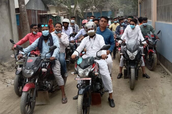 শনিবার (২০ ফেব্রুয়ারি) বিকাল ৩ টার দিকে উপমহাদেশের প্রখ্যাত সাধক হযরত মাওলানা আবু আলী আক্তার উদ্দিন শাহ্ কলন্দর গউছ পাক (রঃ) মাজার শরীফ জামে মসজিদের সামনে থেকে চেয়ারম্যান প্রার্থী মো. তারেক আজিজ খাঁন ইকবালের নেতৃত্বে তিন শতাধিক মোটরসাইকেল নিয়ে বহরটি বেড় করে ইউনিয়নের বিভিন্ন রাস্তা প্রদক্ষিণ শেষে উপজেলা সদরে যায়।