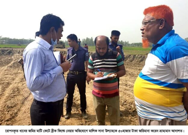 মাহমুদ ফারুক, রামগঞ্জ: ধানি জমি থেকে মাটি কাটা, ব্রীজের মুখে মাটি ফেলে ভরাট করে শত শত একর জমিতে চাষাবাদ ব্যহত করার অভিযোগে লক্ষ্মীপুরের রামগঞ্জে দুইটি ব্রীকফিল্ডের মালিককে নগদ দেড় লক্ষ টাকা জরিমানা করে ভ্রাম্যমান আদালত।