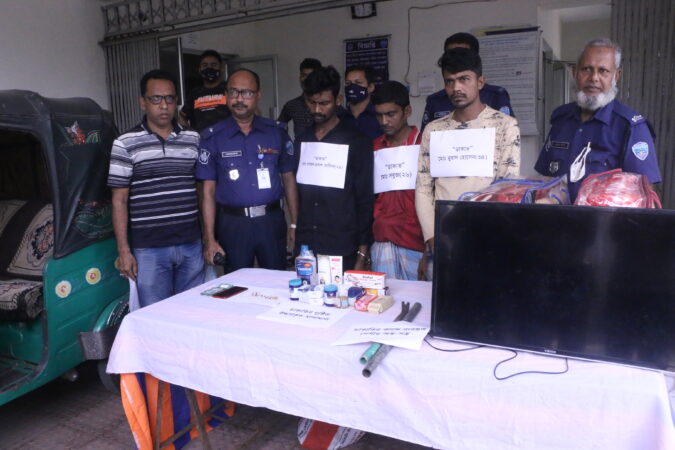 পুলিশ জানায়, গত বৃহস্পতিবার (১৮ মার্চ) রাত ১০টা থেকে শুক্রবার (১৯ মার্চ) বিকাল ৪টা পর্যন্ত সদর উপজেলার বিভিন্ন স্থানে অভিযান চালিয়ে ডাকাত চক্রের ৩ সদস্যকে গ্রেপ্তার করা হয়। পরে তাদের দেয়া তথ্যমতে লুণ্ঠিত স্বর্ণের ২ জোড়া কানের দুল, ৩টি আংটি, ১টি চেইন, ২টি বিদেশি কম্বল, ৩২ ইঞ্চি এলইডি টিভি, স্যামসাং ব্র্যান্ডের ১টি স্মার্টফোন, বিভিন্ন কসমেটিক্স সামগ্রী এবং নগদ ২৪ হাজার ৫০০ টাকা উদ্ধার করা হয়। এরআগে গত শনিবার রাতে সদর উপজেলার দক্ষিণ মান্দারী গ্রামে ডাকাতির ঘটনায় থানায় লিখিত অভিযোগ করেন ভুক্তভোগী পরিবারের সদস্য ইয়াছিন আরাফাত তুষার। এরই ভিত্তিতে বিশেষ অভিযানে নামে পুলিশ।
